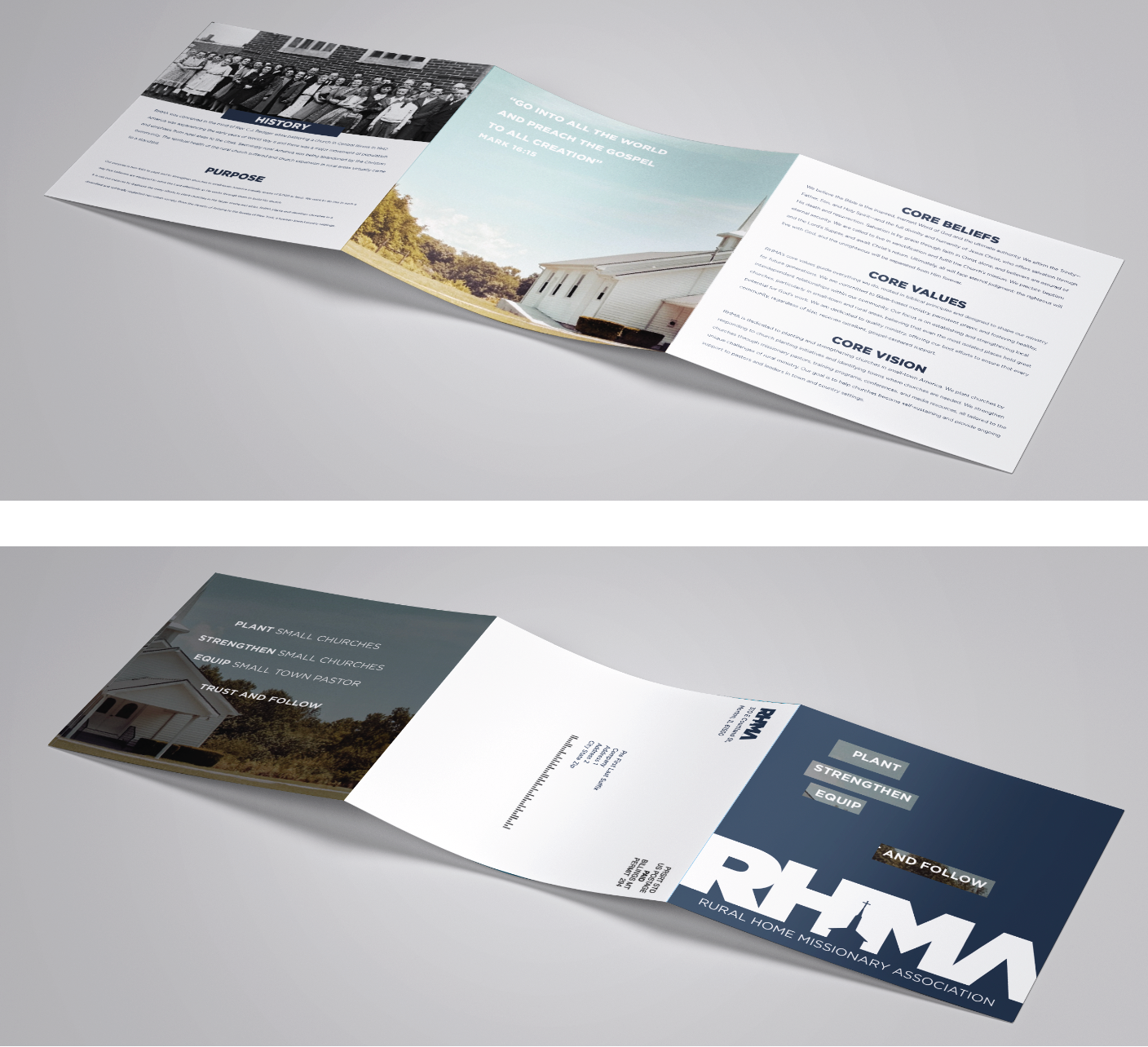 A comprehensive rebranding and visual update for RHMA, a nonprofit dedicated to providing services to small churches in rural America. This project provided a cleaner, simplified brand identity, allowing stronger, easier communication. The wordmark and typography enhance clarity and support the company's trustworthy identity. The entire identity sought to create mission-driven imagery across their digital and print materials.