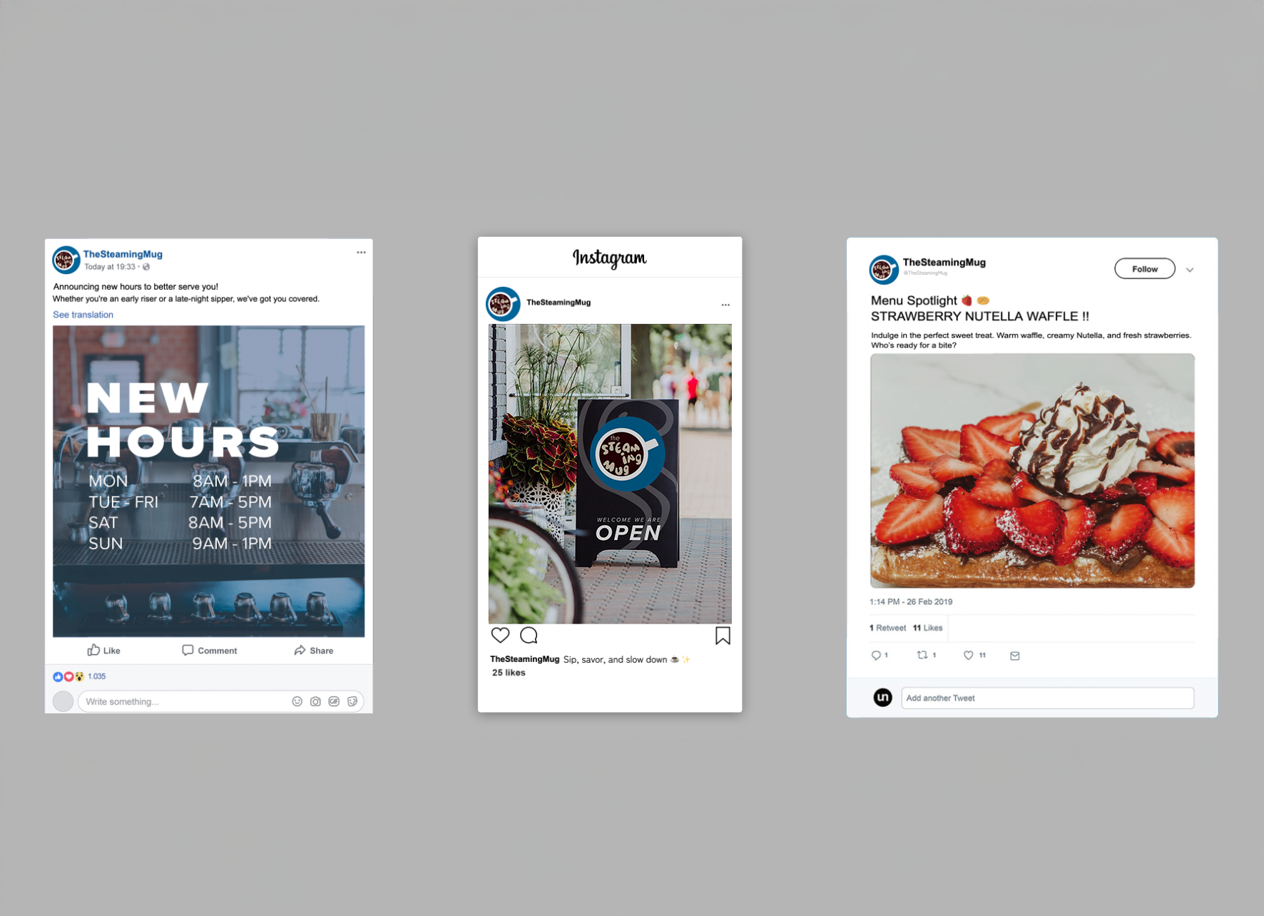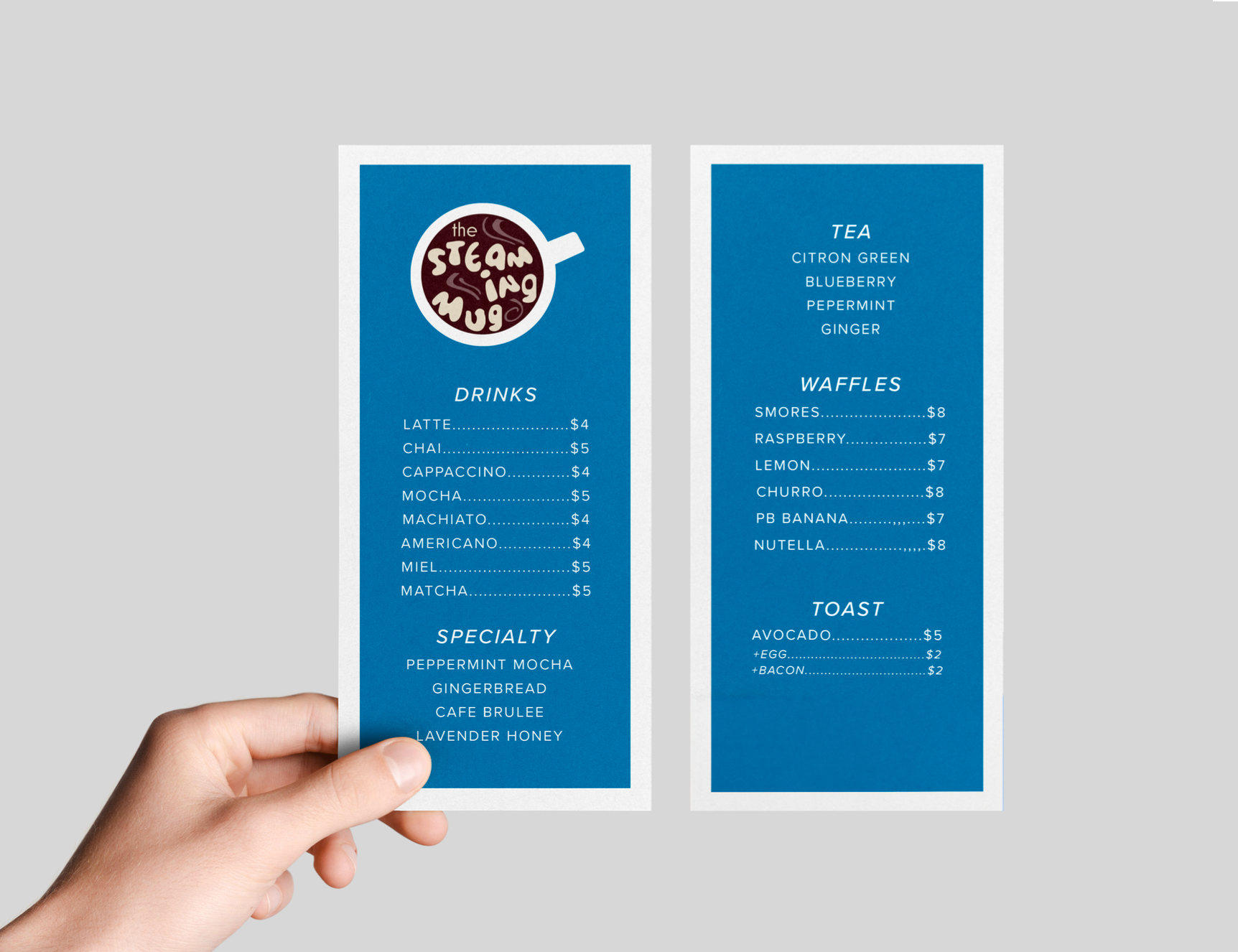 For this project, I rebranded a local coffee shop from the ground up, developing a new name, visual identity, and cohesive branding system. The circular logo references the shape of a coffee mug viewed from above, while organic letterforms and steam details add personality and movement—reinforcing the sensory experience of hot coffee and keeping the brand friendly and approachable. Through research and exploration, I selected typography and colors that support the shop’s values, ensuring consistency across all deliverables. On packaging, a repeating steam pattern extends the visual system, adding texture and cohesion to create a unified brand experience.